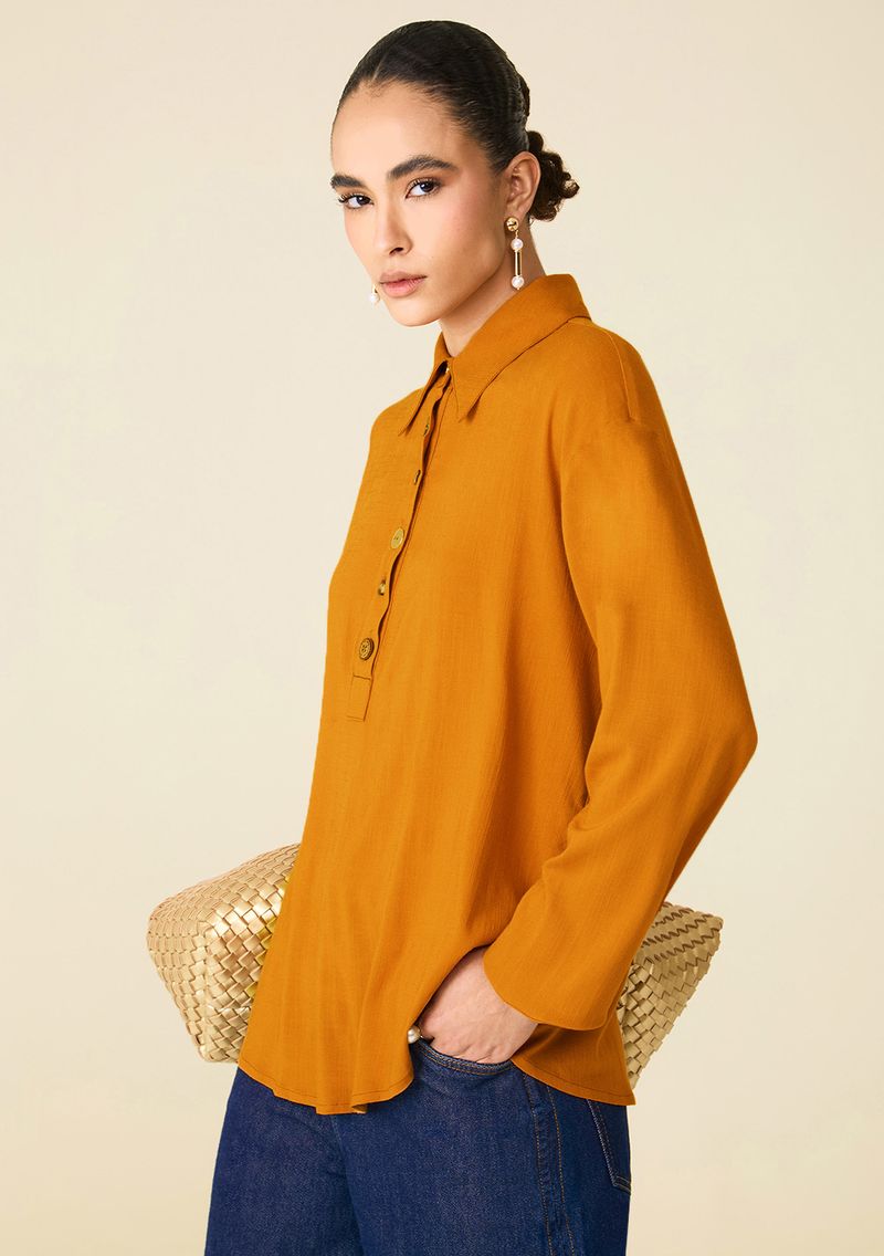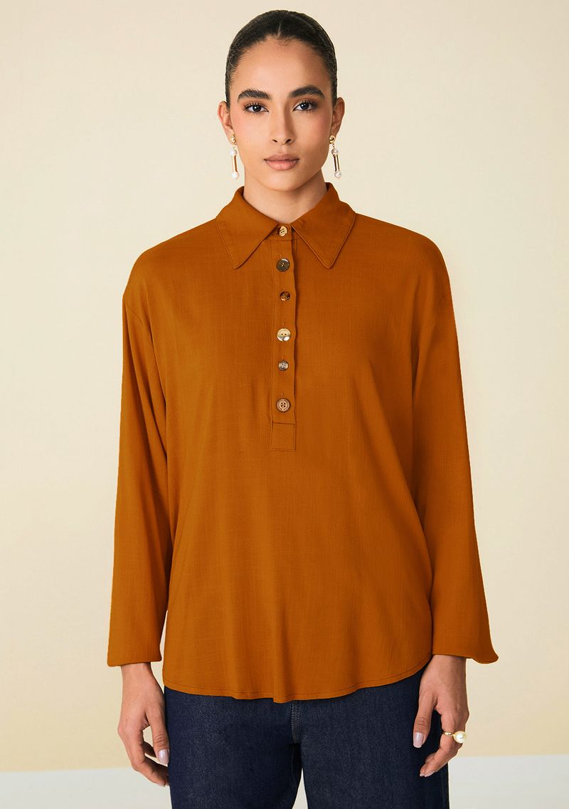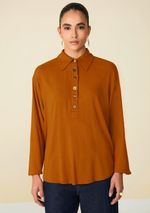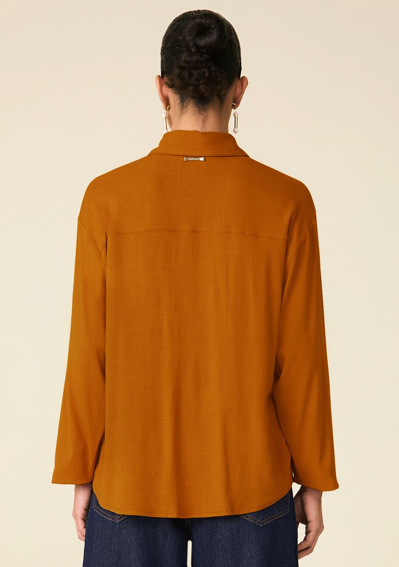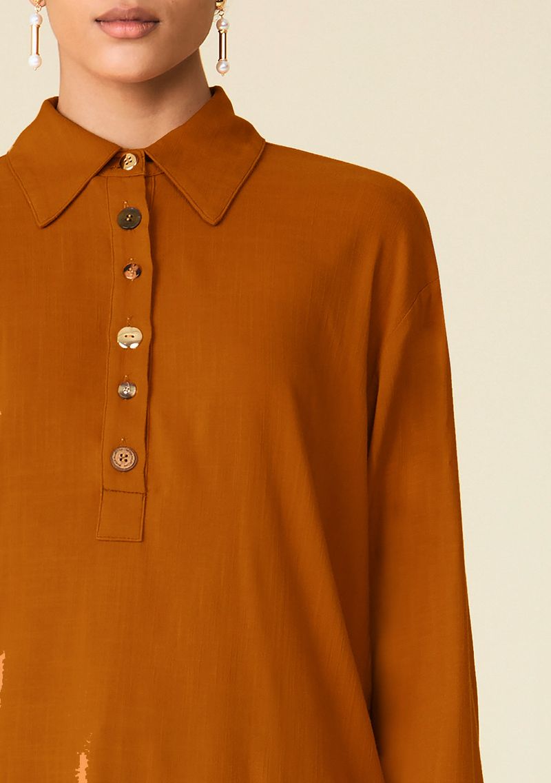 Camisa Maria.Valentina Oversized Gola Tradicional Manga Longa Padrão Marrom