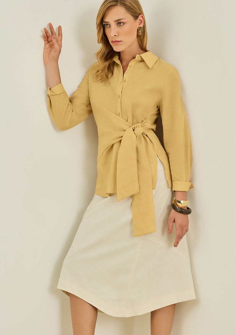 Aposte em uma peça que une sofisticação e leveza, perfeita para diversas ocasiões. Com um design versátil, a camisa em tom bege possui gola clássica e manga longa, ideal para compor looks que transitam do casual ao elegante. O tecido em tricoline de algodão 100% proporciona conforto ao toque, permitindo que você se sinta confiante o dia todo. Combine-a com uma saia midi e sandálias de tiras para um visual deslumbrante, ou use-a com calças de alfaiataria e acessórios minimalistas para um estilo mais formal. A coleção Litorale reflete a essência vibrante da mulher contemporânea, celebrando a brasilidade e a autenticidade em cada detalhe.