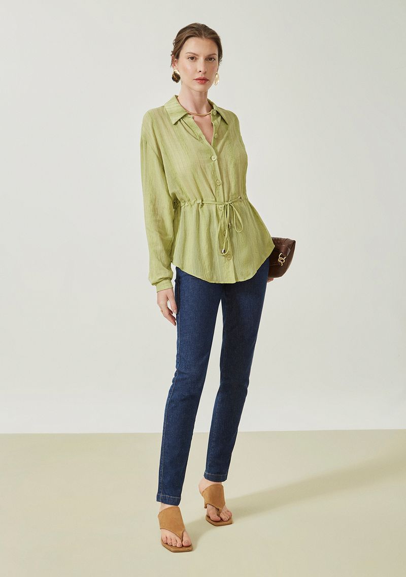 Camisa Maria.Valentina Solta Gola Tradicional Manga Longa Alongada Verde