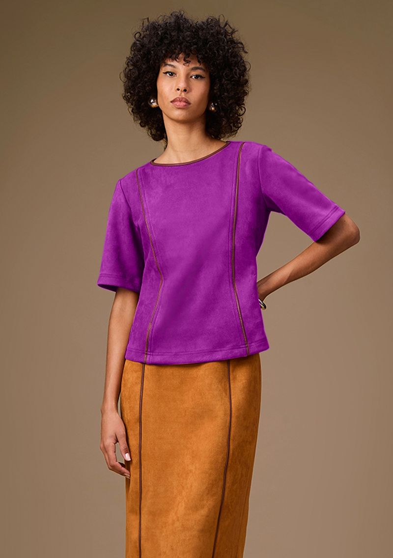Camiseta Maria.Valentina Solta Decote Careca Manga Curta Padrão Roxo