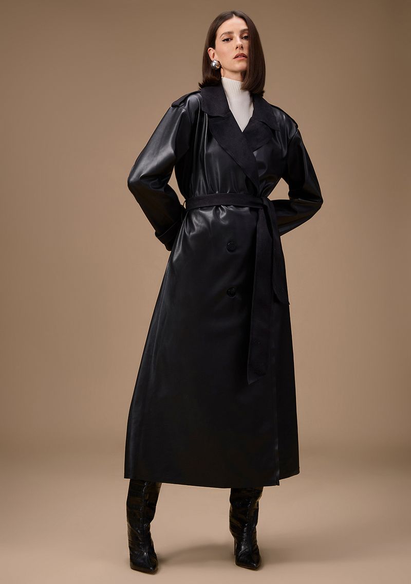 Mergulhe na sofisticação da Maria.Valentina com este casaco preto, ajustado e alongado, que transforma qualquer visual em uma declaração de estilo. Perfeito para ocasiões do dia a dia ou festas, é confeccionado em couro sintético que abraça o corpo, garantindo conforto e elegância. Combine com calças clássicas ou vestidos fluidos para valorizar sua presença. Uma peça versátil que reflete a harmonia entre tradição e modernidade, inspirada pela rica arquitetura italiana. Celebre sua essência e brilhe em cada momento.