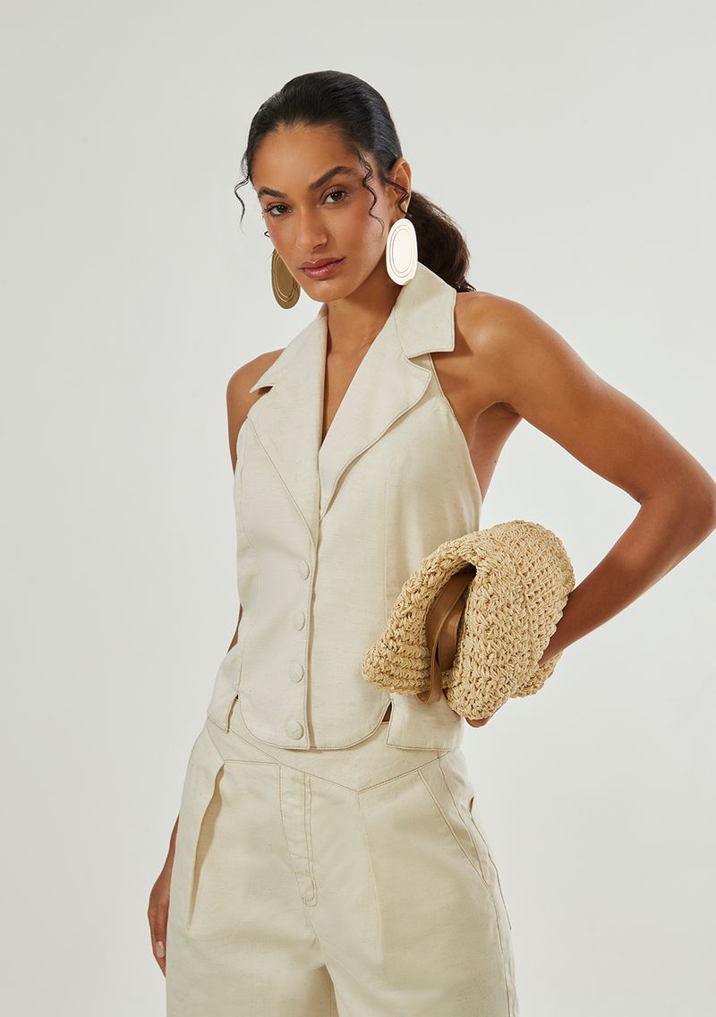 Transforme seu visual com a sofisticação do colete ajustado em off white da Maria.Valentina, uma peça que une a elegância da sarja com a suavidade do algodão, modal e linho. Ideal para eventos ou para o dia a dia, ele se adapta a variados estilos. Combine com blusa de seda e calças de alfaiataria para um look refinado, ou opte por jeans e camiseta para um toque casual. Complete com acessórios de couro marrom ou dourado para destacar sua presença. Parte da coleção 'Os Fragmentos de um Tempo Passado', essa peça reflete o equilíbrio entre tradição e modernidade.