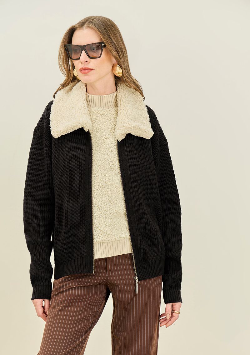 Jaqueta Maria.Valentina Solta Manga Longa Padrão Preto