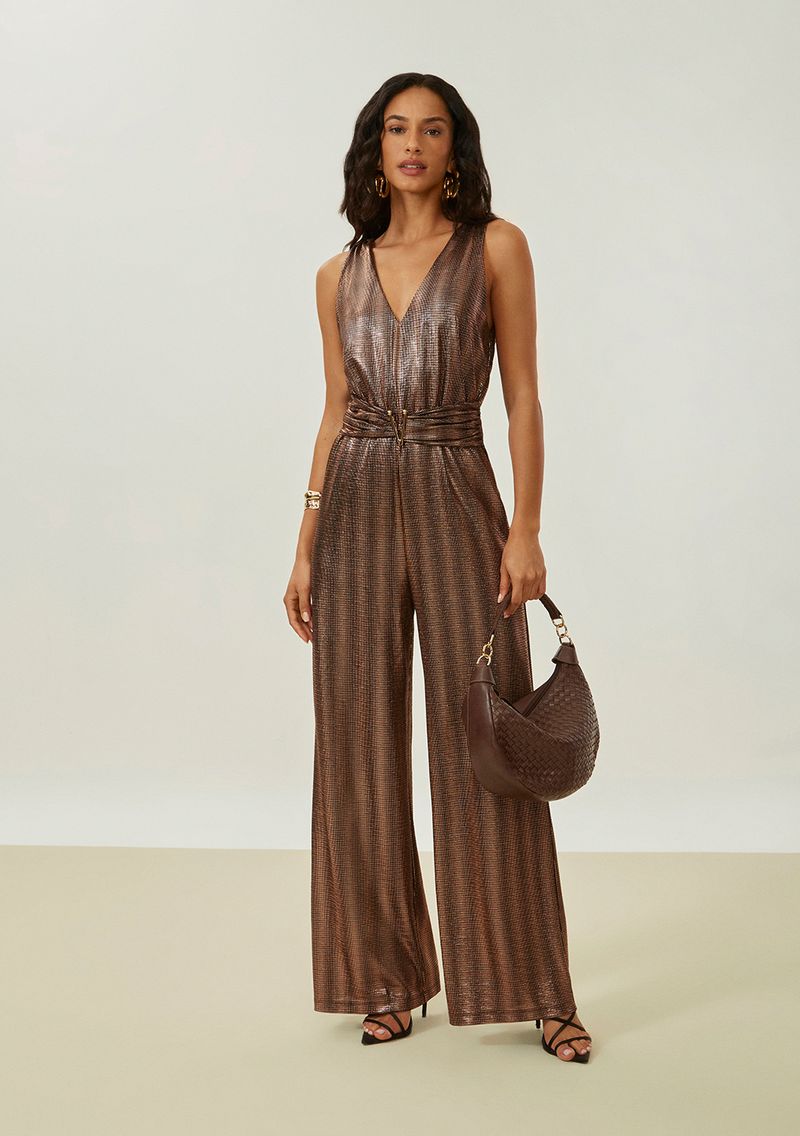 OUTLETRoupasMacacões e MacaquinhosMacacão Maria.Valentina Solto Decote V Sem Manga Longo Marrom