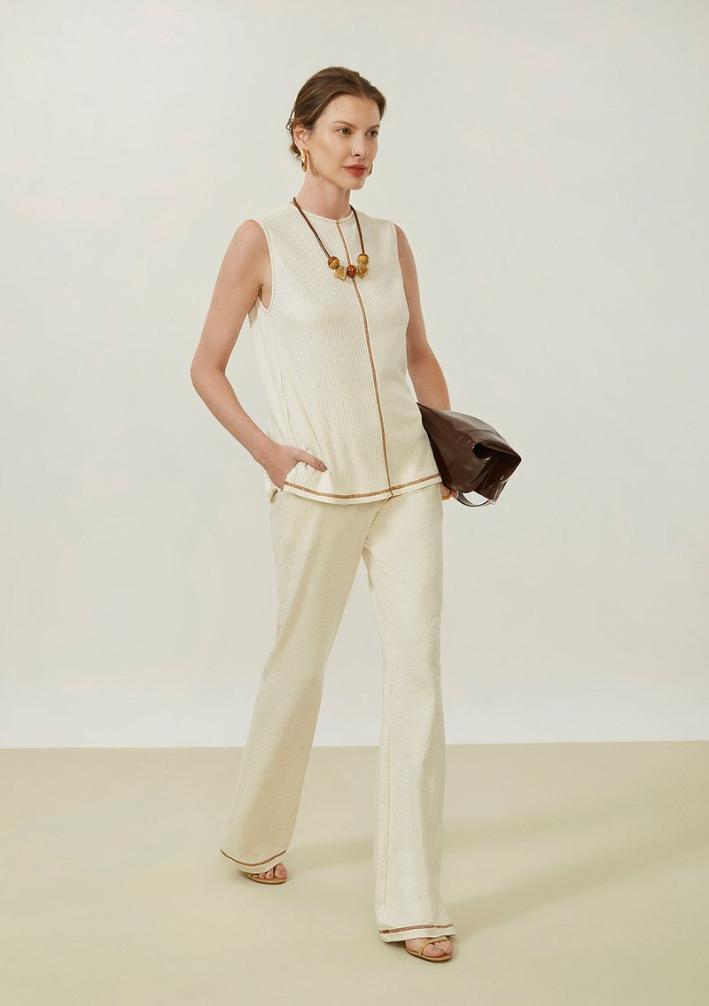 Eleve sua presença com a regata ajustada da Maria.Valentina em tom bege, que combina o melhor do conforto e estilo. O decote careca alongado proporciona um toque sofisticado, enquanto a composição de viscose, algodão e linho garante um caimento impecável. Ideal para eventos casuais ou elegantes, harmoniza perfeitamente com saias midi estampadas ou calças de alfaiataria. Complemente com acessórios dourados para um look deslumbrante e confiante que te acompanha o dia todo.