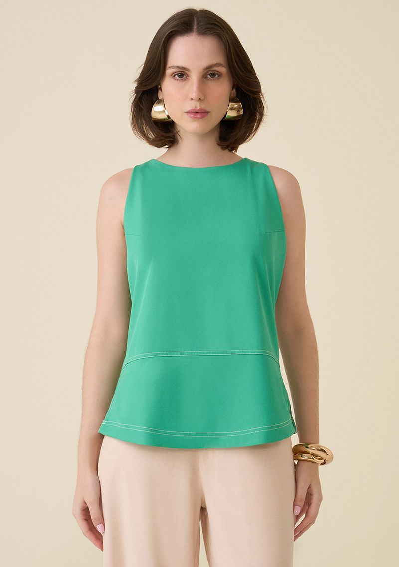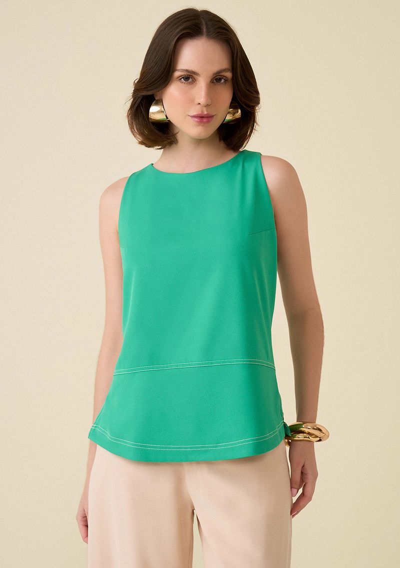 OUTLETRoupasBlusasRegata Maria.Valentina Decote Redondo Detalhe Pesponto Verde