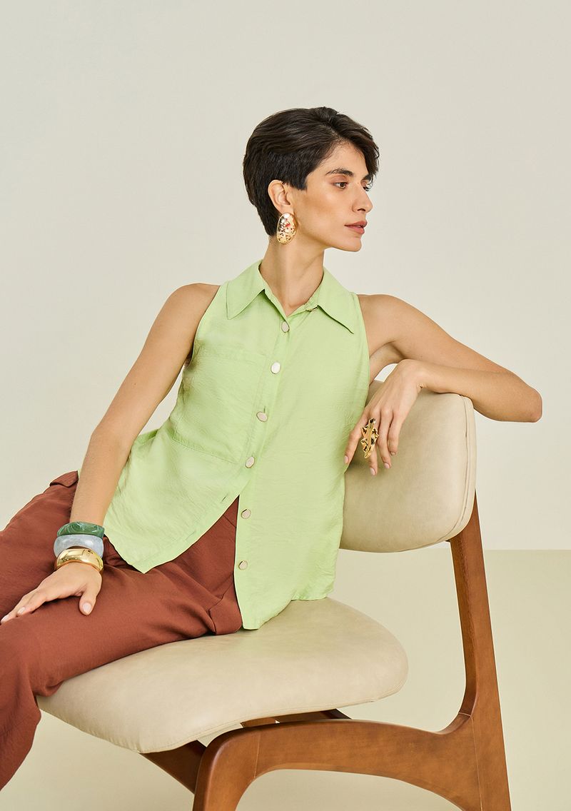 A regata em tom verde vibrante é a escolha perfeita para a mulher que busca elegância e conforto em qualquer ocasião. Com um caimento solto e gola cava francesa, essa peça de viscose 100% proporciona leveza e um toque suave à pele, ideal para os dias mais quentes da primavera e verão. Combine-a com uma saia midi e sandálias de tiras para um look casual, ou com calças de alfaiataria e acessórios statement para uma ocasião mais sofisticada. A coleção Litorale da Maria.Valentina traz um frescor autêntico e uma narrativa de liberdade que ressoa com a essência feminina. Sinta-se confiante e radiante em cada momento, onde quer que vá.