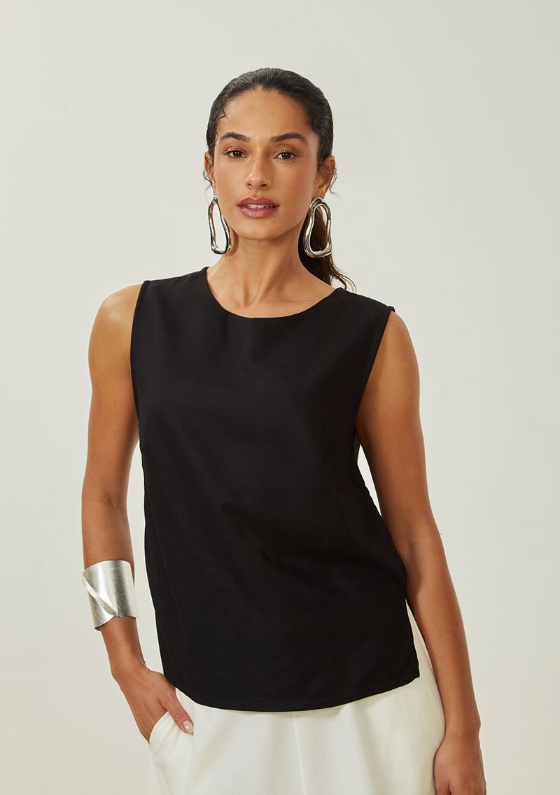 OUTLETRoupasBlusasRegata Maria.Valentina Solta Decote Careca Padrão Preto