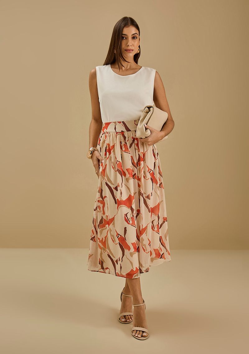 Saia Maria.Valentina Evasê Alta Longa Laranja