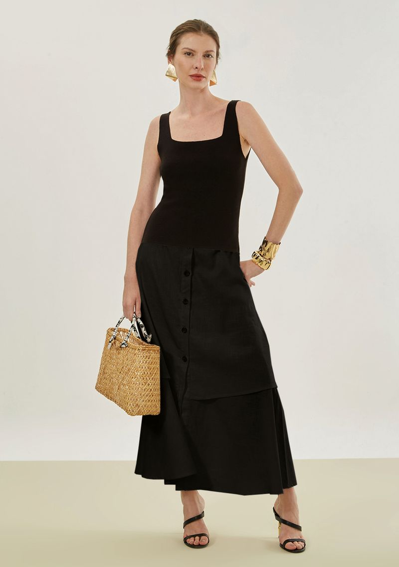 Saia Maria.Valentina Evasê Alta Longa Preto