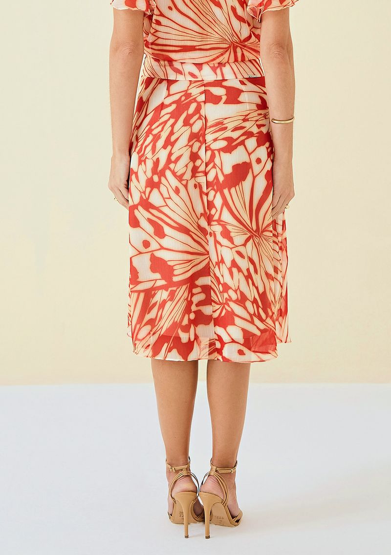 Saia Maria.Valentina Midi Fluida Bolso Faca Vermelho