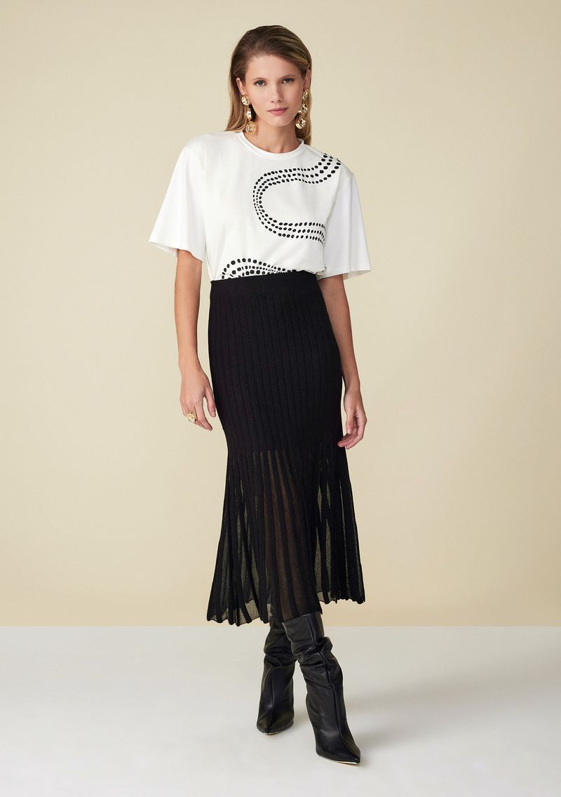 Saia Maria.Valentina Midi Fluida Tricô Preto