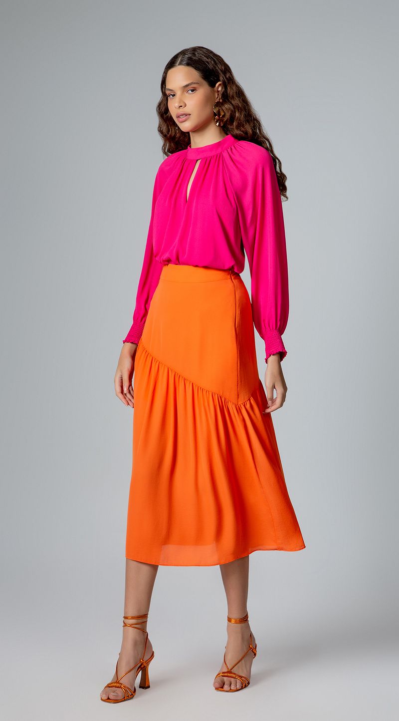 Saia Maria.Valentina Midi Godê Com Recorte Laranja
