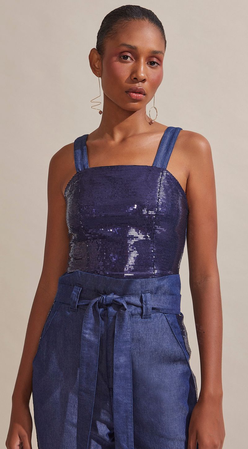 Top Maria.Valentina Justo Alça Detalhe Paetê Azul Marinho