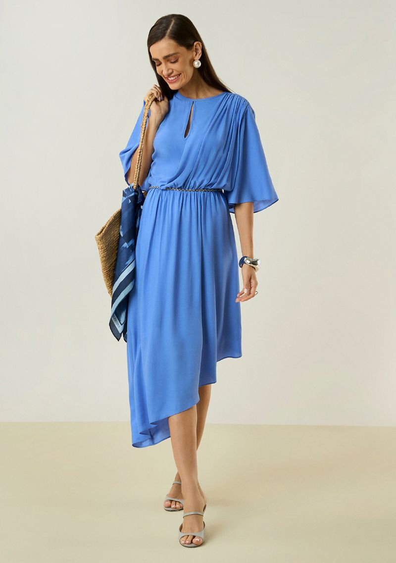 Envolva-se na sofisticação do vestido Maria.Valentina, uma peça essencial para o guarda-roupa da mulher moderna. Com seu design ajustado e decote careca, este vestido midi em azul oceânico é perfeito para momentos casuais ou eventos elegantes. Feito em viscose e poliéster, oferece conforto e um caimento perfeito. Combine com sandálias de salto e uma clutch para um look irresistível. Parte da coleção Pellicola, inspira-se na elegância dos verões italianos. Invista em um estilo que reflete sua confiança e charme pessoal.