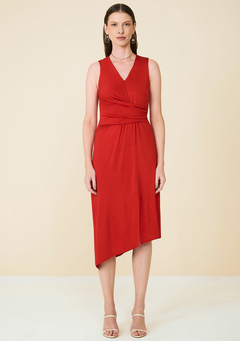 Vestido Maria.Valentina Ajustado Decote Transpassado Sem Manga Midi Vermelho