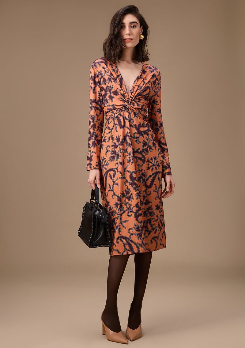 OUTLETRoupasVestidosVestido Maria.Valentina Ajustado Decote V Manga Longa Midi Marrom