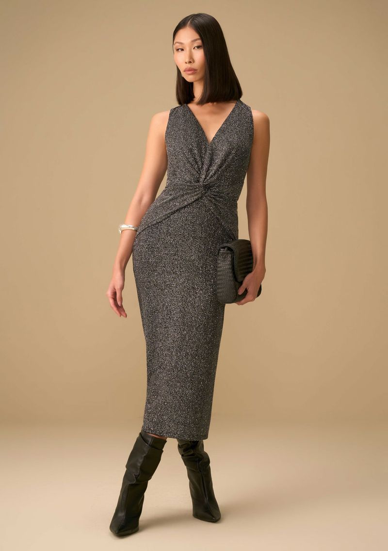 OUTLETRoupasVestidosVestido Maria.Valentina Ajustado Decote V Sem Alça Midi Preto