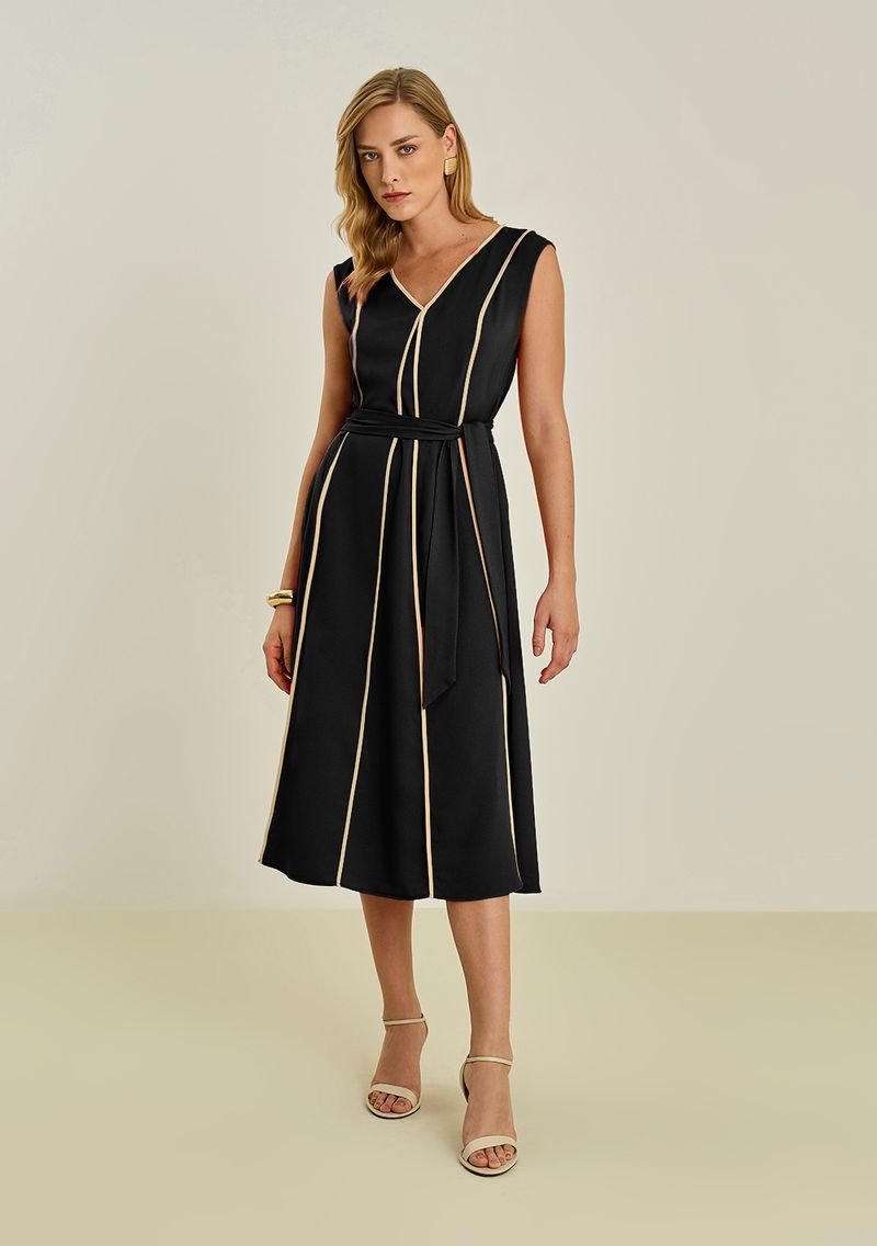 Vestido Maria.Valentina Ajustado Decote V Sem Manga Midi Preto