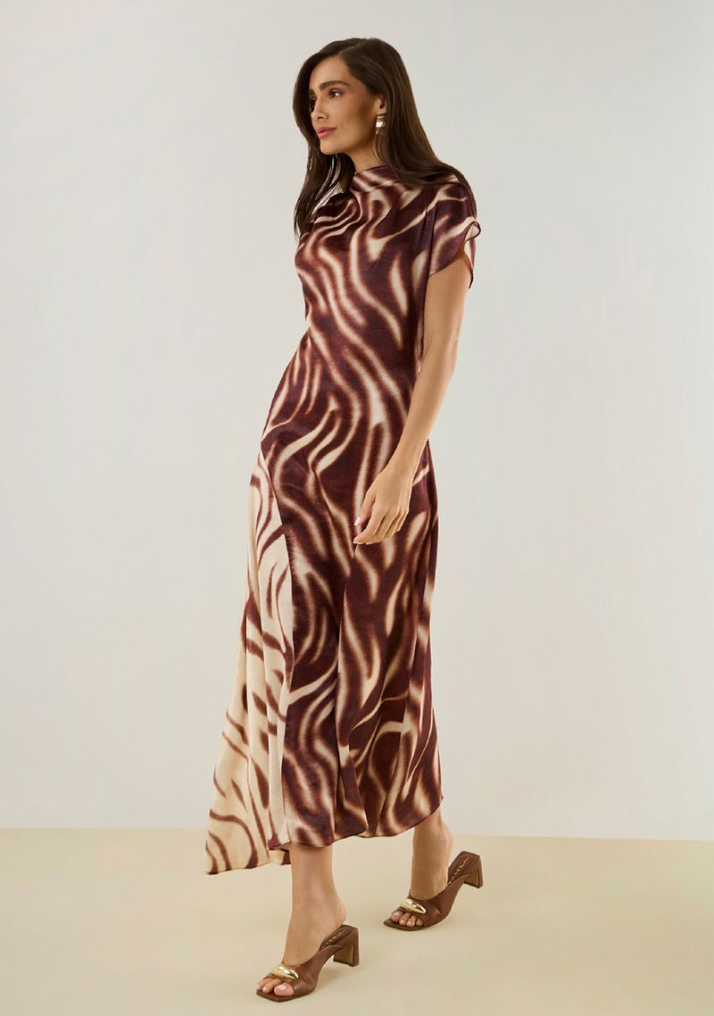 Vestido Maria.Valentina Ajustado Gola Alta Manga Curta Midi Marrom