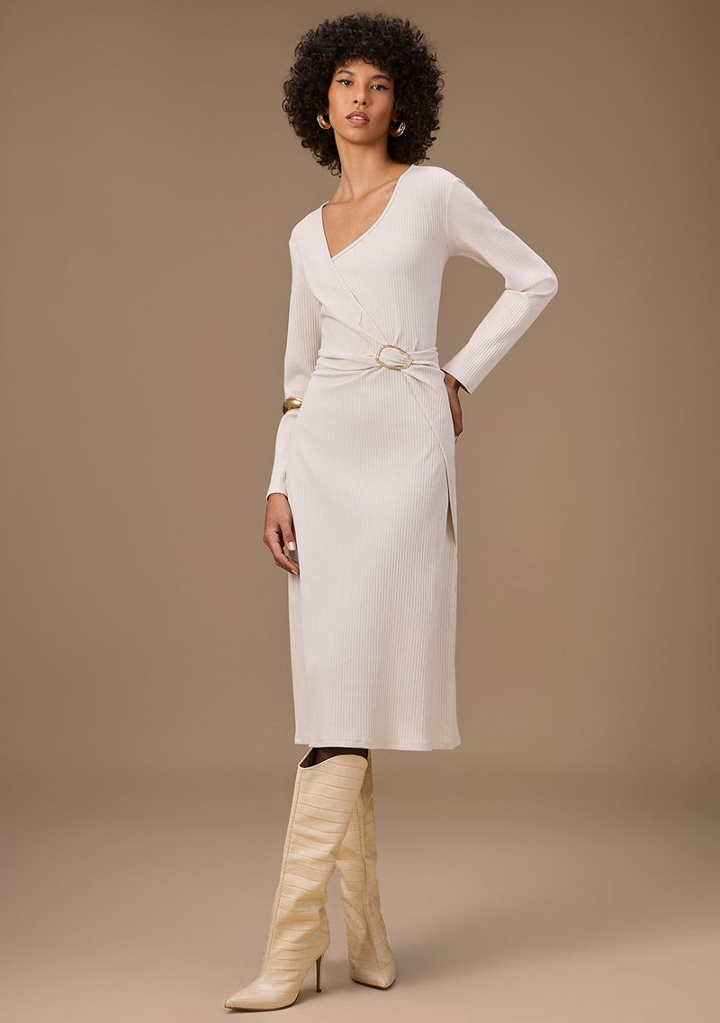 OUTLETRoupasVestidosVestido Maria.Valentina Ajustado Gola Alta Manga Longa Midi Off White