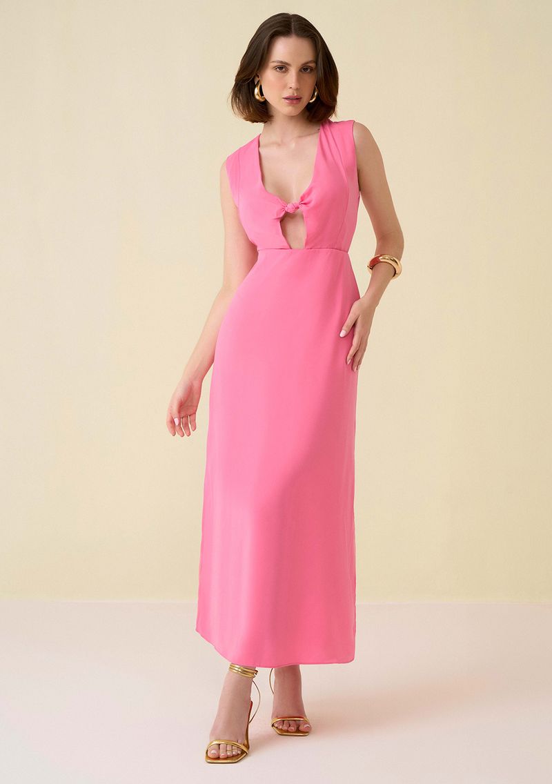 Vestido Maria.Valentina Longo Decote V Torção Frente Rosa