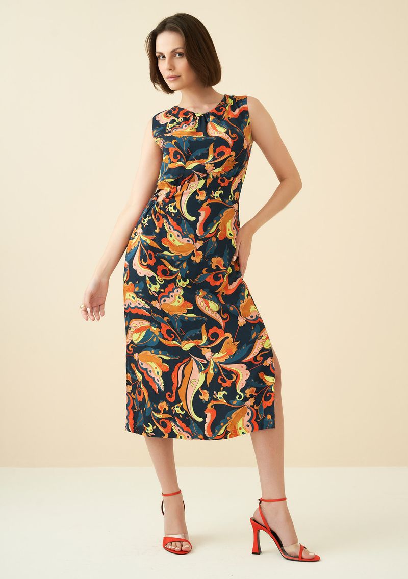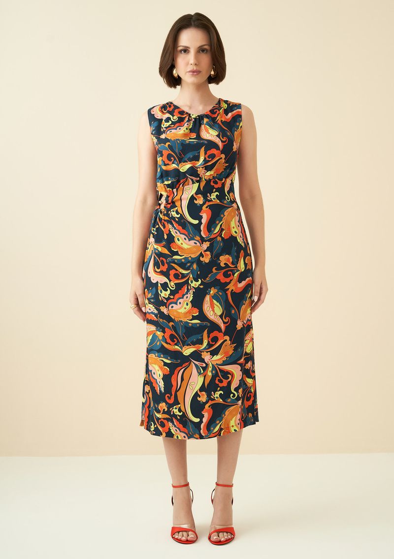 OUTLETRoupasVestidosVestido Maria.Valentina Midi Decote Redondo Com Metal Azul Marinho