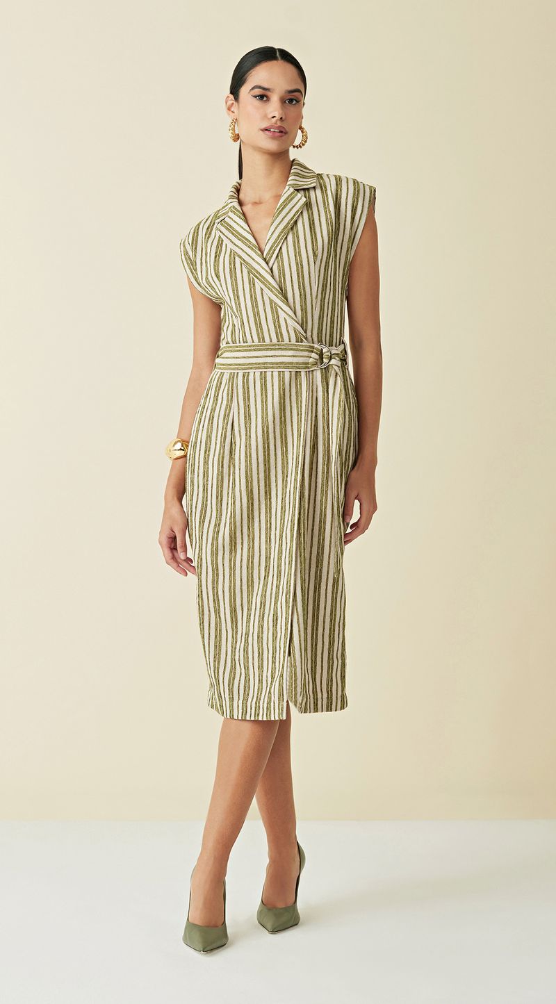 OUTLETRoupasVestidosVestido Maria.Valentina Midi Decote Transpassado Com Faixa Cru
