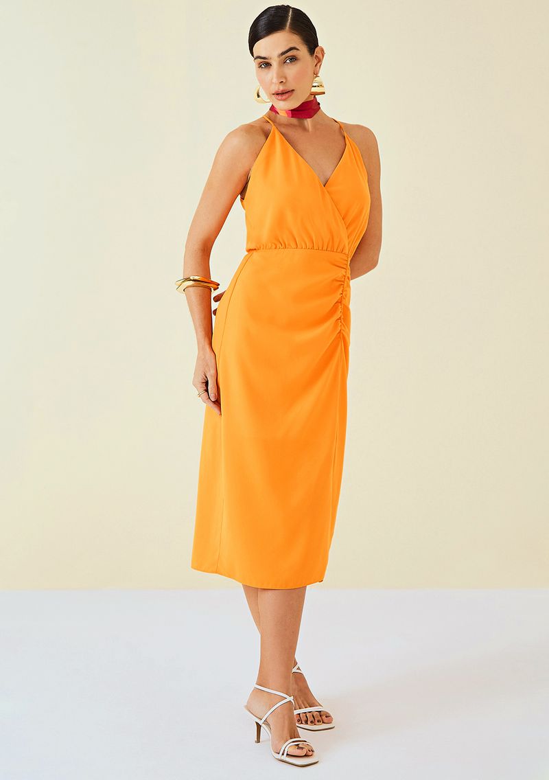 OUTLETRoupasVestidosVestido Maria.Valentina Midi Decote V Com Drapeado Laranja