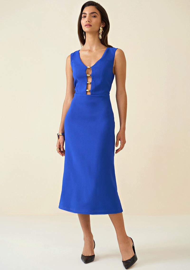 Vestido Maria.Valentina Midi Decote V Com Metal Azul