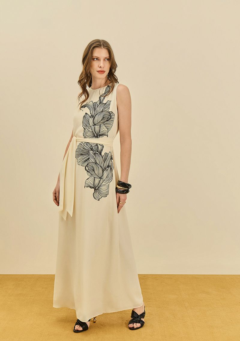 Vestido Maria.Valentina Solto Decote Careca Sem Manga Longo Off White