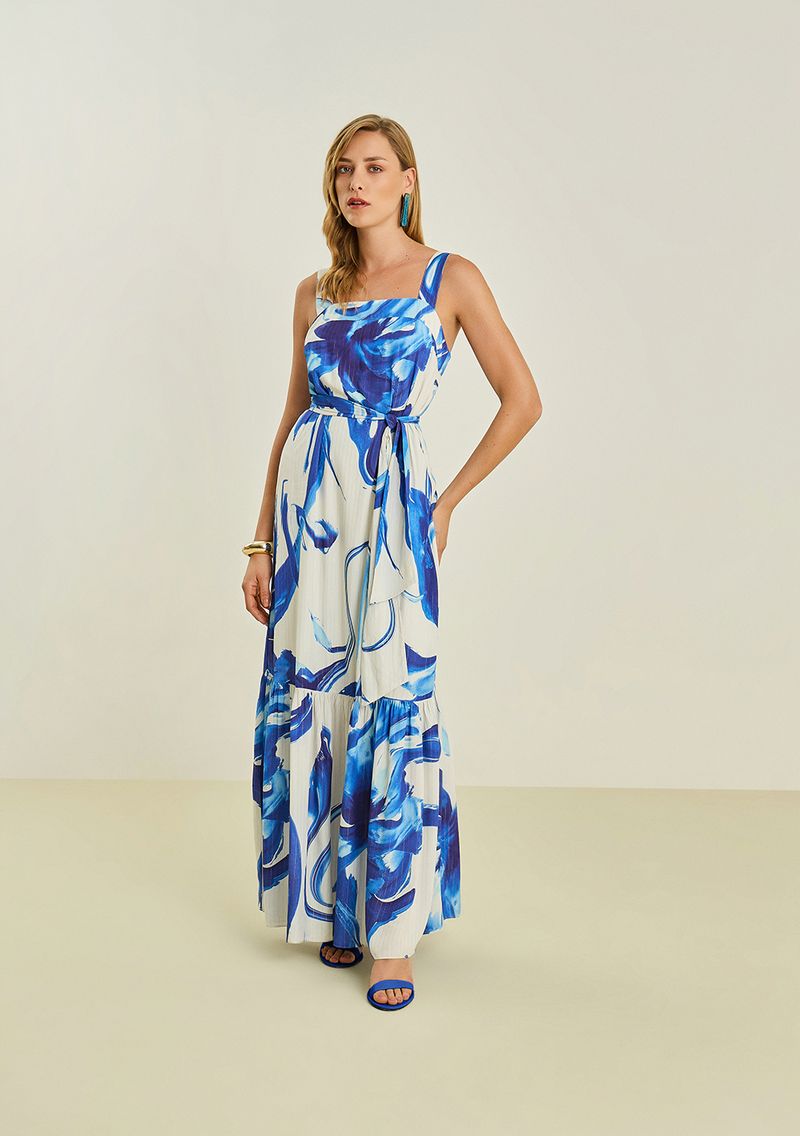 Vestido Maria.Valentina Solto Decote Reto Com Alça Longo Azul