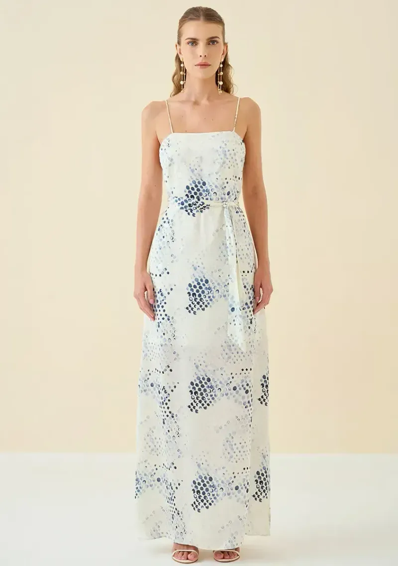 Vestido Maria.Valentina Solto Decote Reto Com Alça Longo Off White