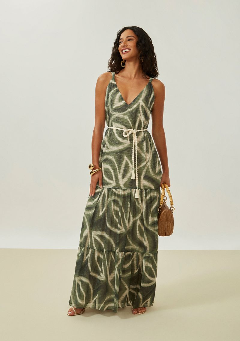 Vestido Maria.Valentina Solto Decote V Com Alça Longo Verde