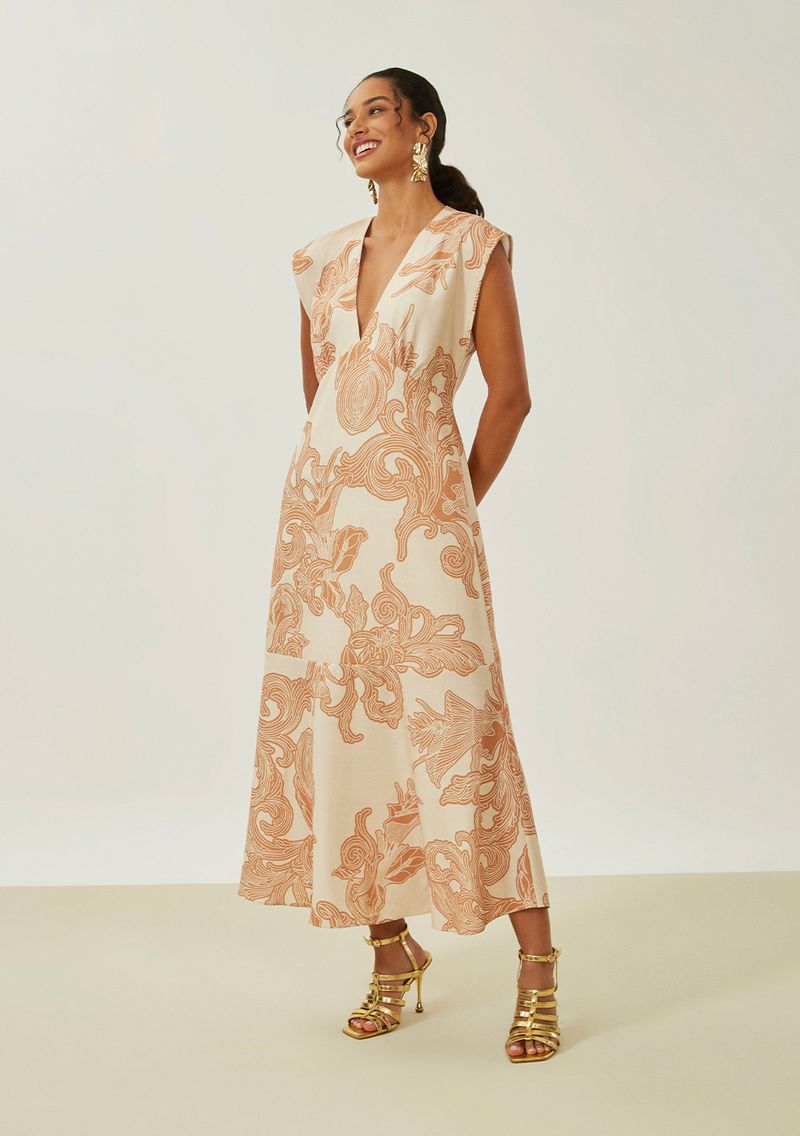OUTLETRoupasVestidosVestido Maria.Valentina Solto Decote V Manga Curta Midi Off White