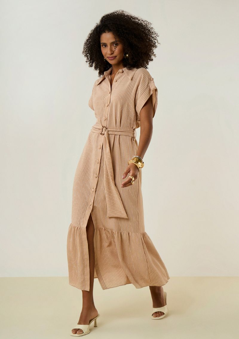 Embrace elegância com este vestido midi marrom da Maria.Valentina, uma peça atemporal que combina sofisticação e conforto. Com gola clássica e mangas curtas, é perfeito para ocasiões casuais ou eventos elegantes. Confeccionado em viscose, poliéster e poliamida, o tecido flui suavemente, proporcionando um caimento impecável. Combine com sandálias de tiras e uma clutch para um look refinado. Parte da coleção inspirada nos verões italianos, cada detalhe deste vestido exala charme e estilo inconfundível, alinhando-se à essência autêntica da mulher moderna. Invista em uma peça que realça sua feminilidade e desperta sorrisos por onde passa.